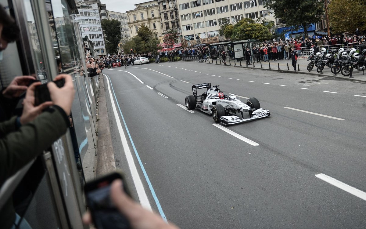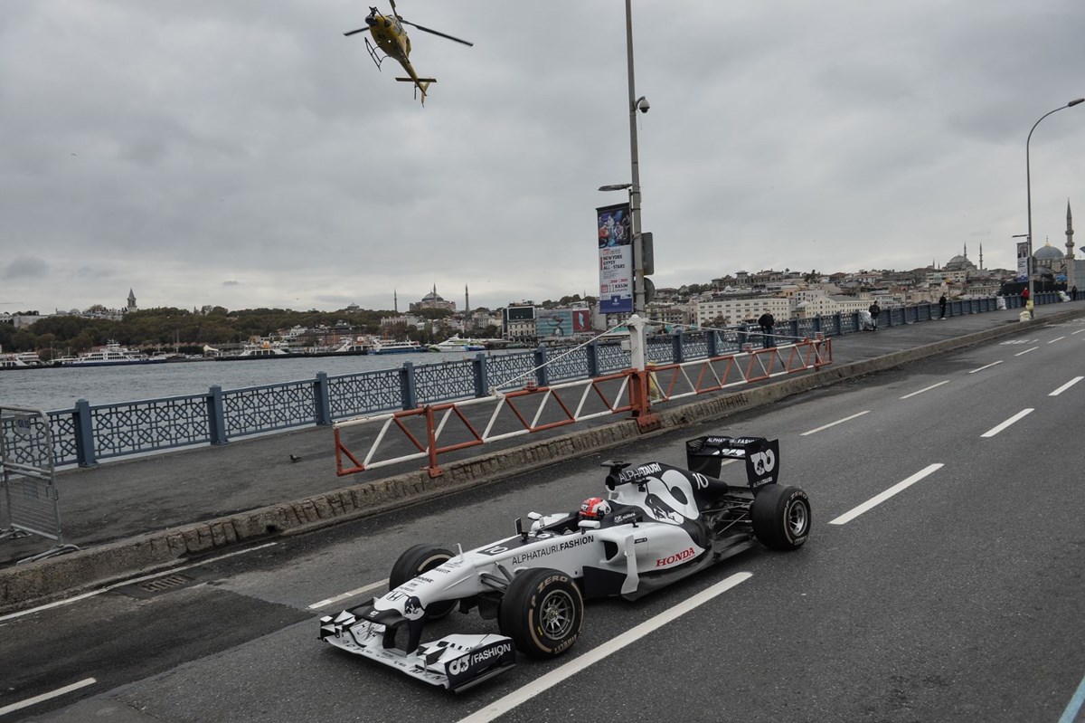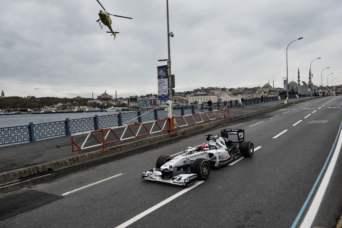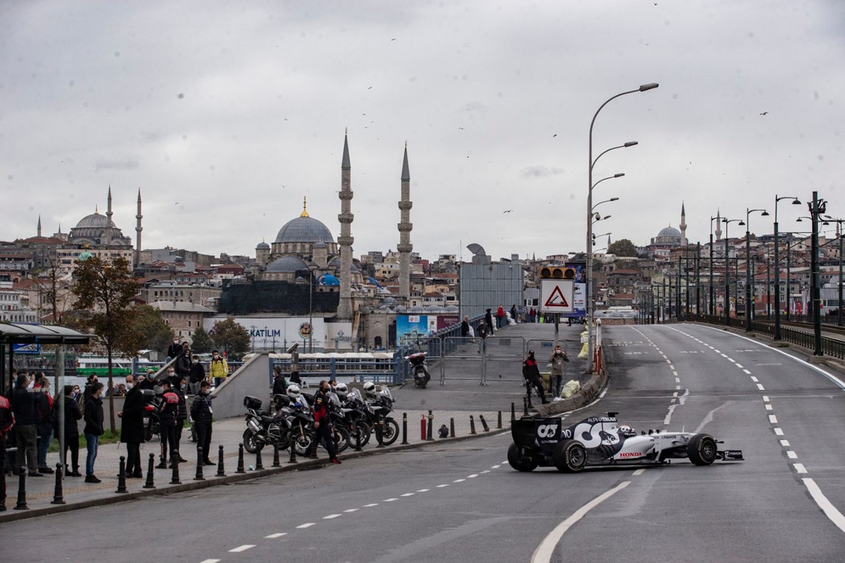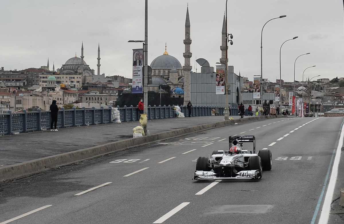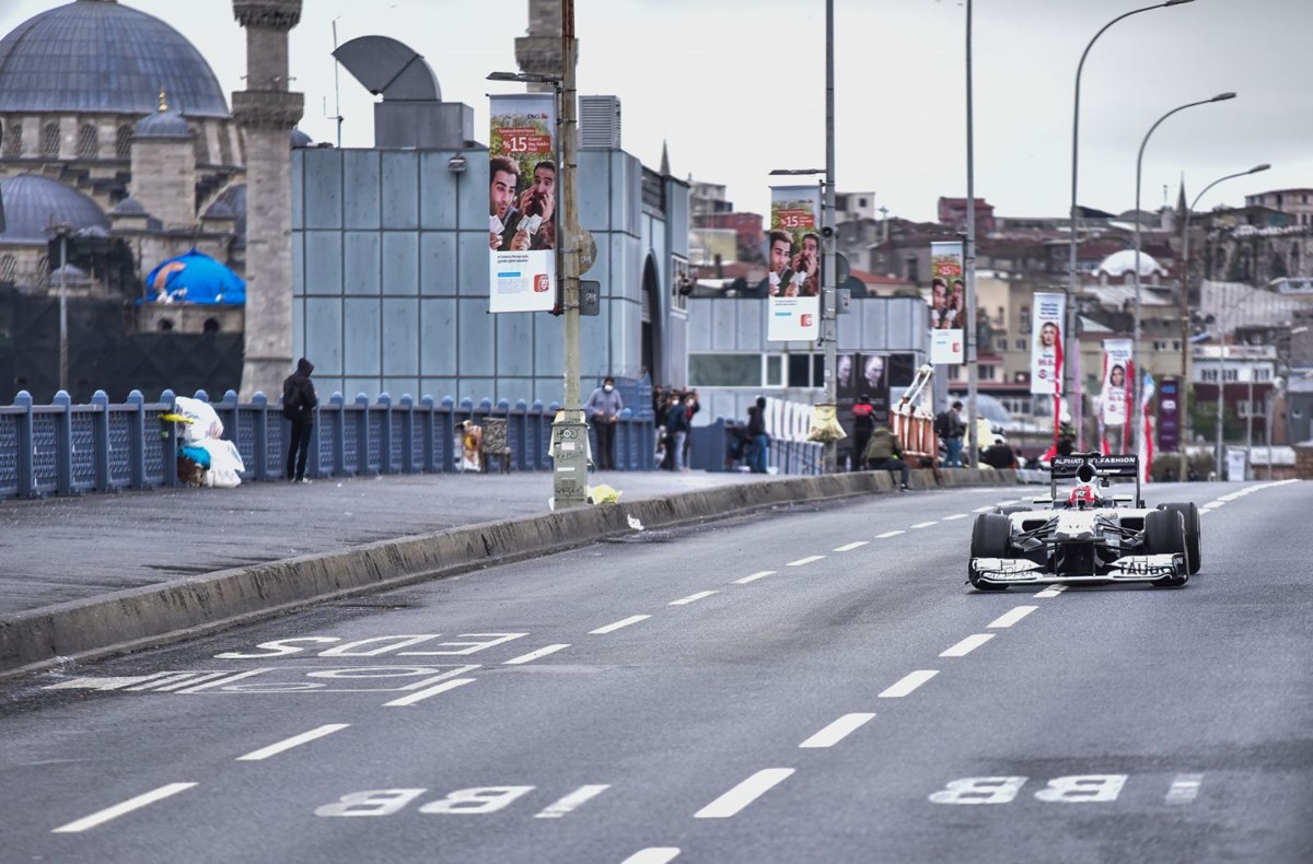 Formula 1 yarışlarının Türkiye’deki ayağının tanıtım filmi için Eminönü ve Galata Köprüsü’nde çekim yapıldı. Araçları görmek isteyen bazı vatandaşlar Eminönü’nde yoğunluk oluşturdu. Formula 1 araçları havadan da fotoğraflandı.