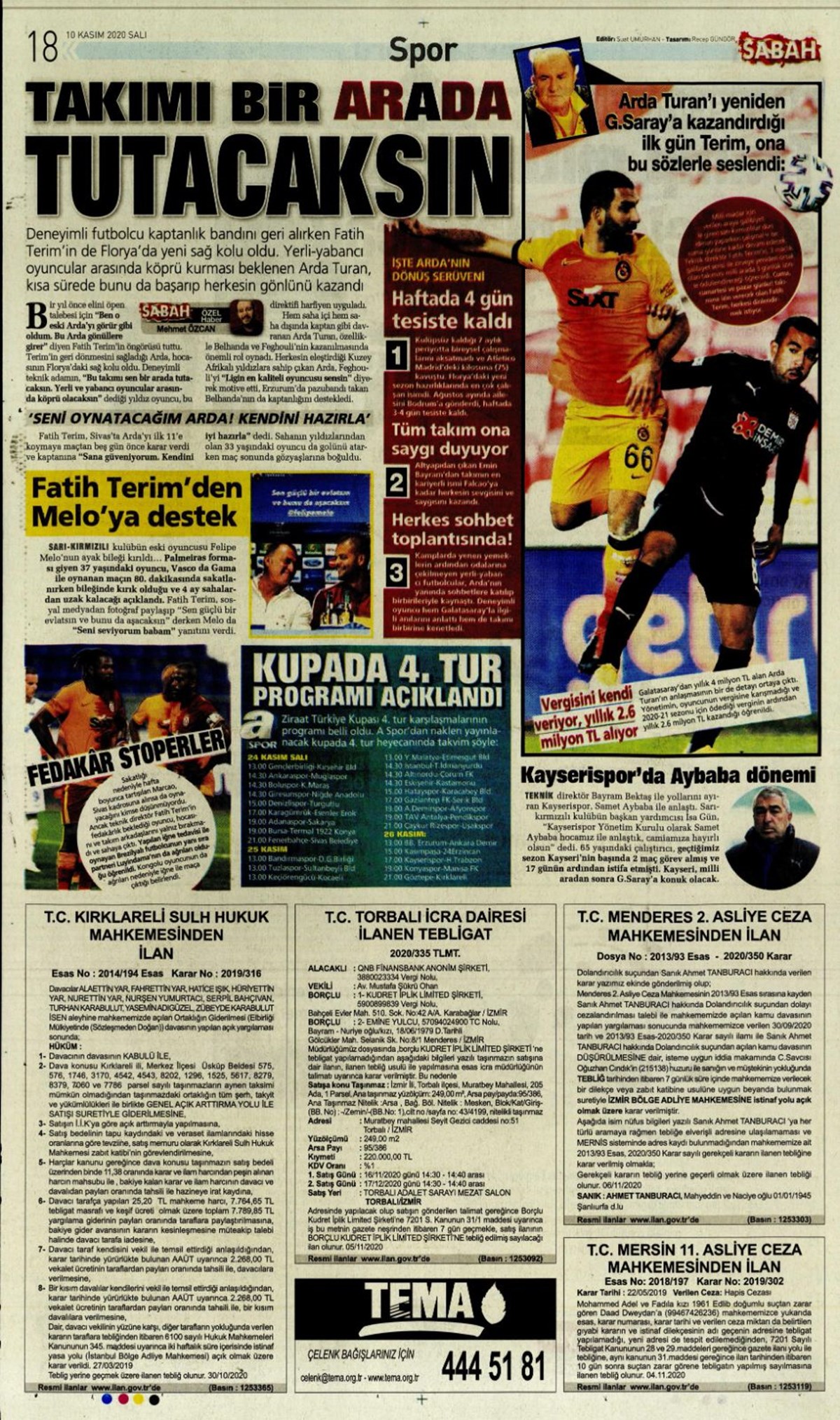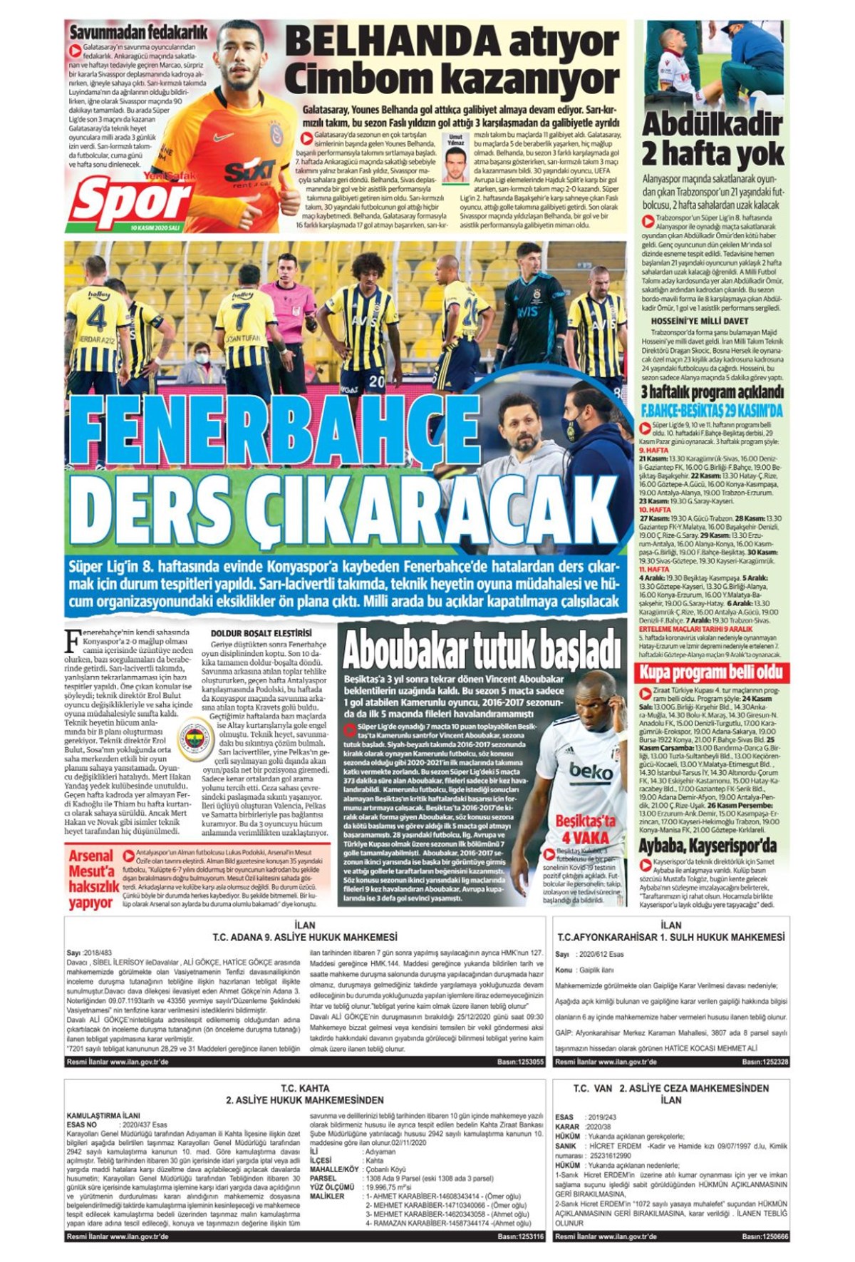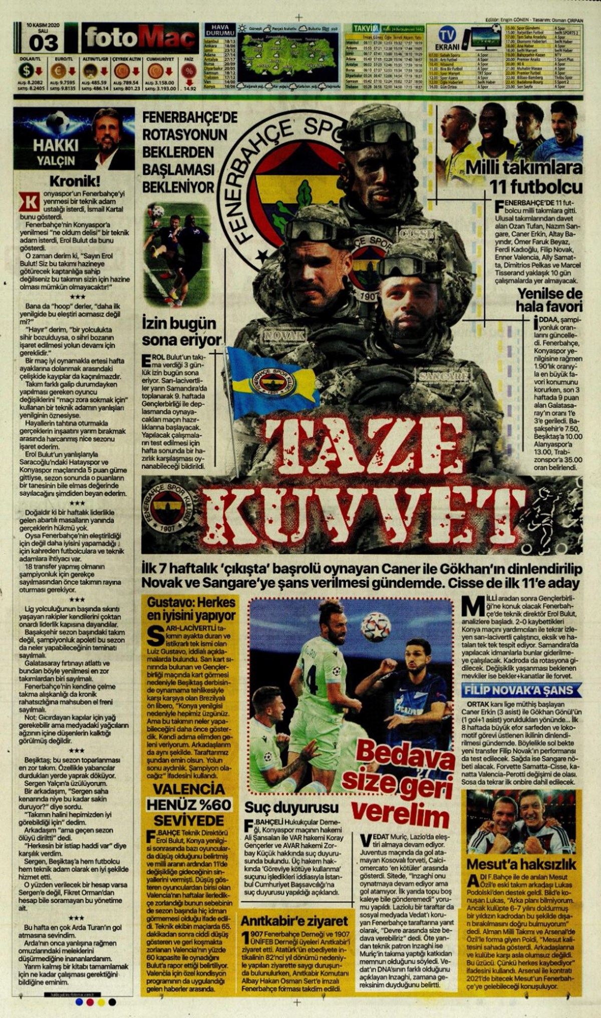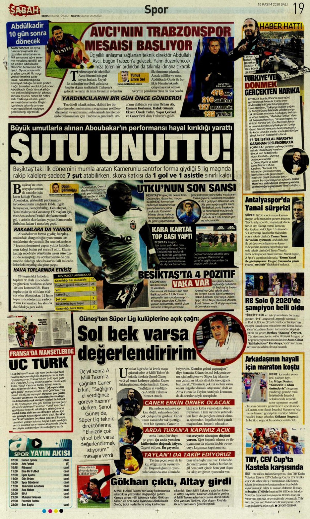 10 Kasım 2020 gazetelerin spor sayfalarına, Beşiktaş, Fenerbahçe, Galatasaray ve Trabzonspor’un transfer haberlerine, 1 dakikada göz atın.