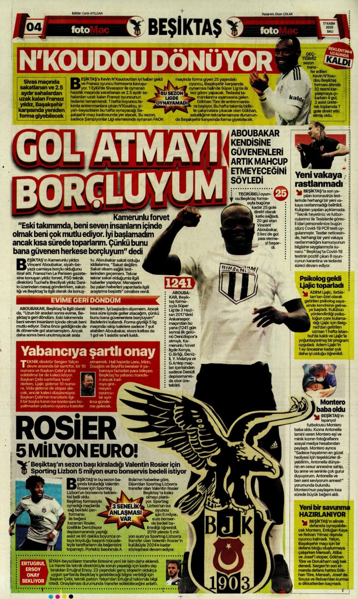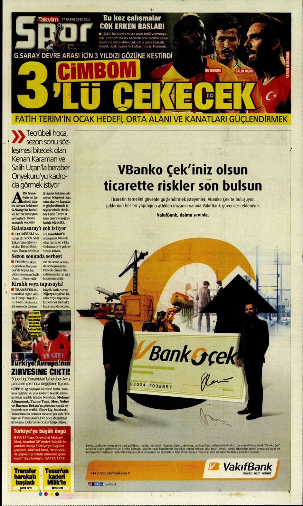 17 Kasım 2020 gazetelerin spor sayfalarına, Beşiktaş, Fenerbahçe, Galatasaray ve Trabzonspor’un transfer haberlerine, 1 dakikada göz atın.