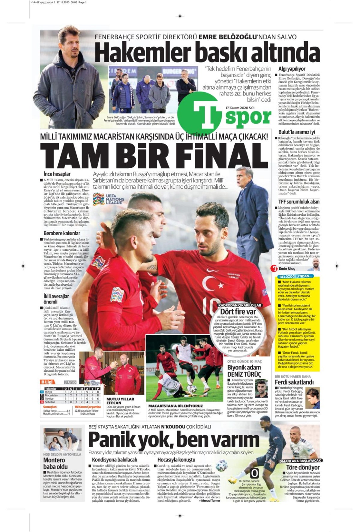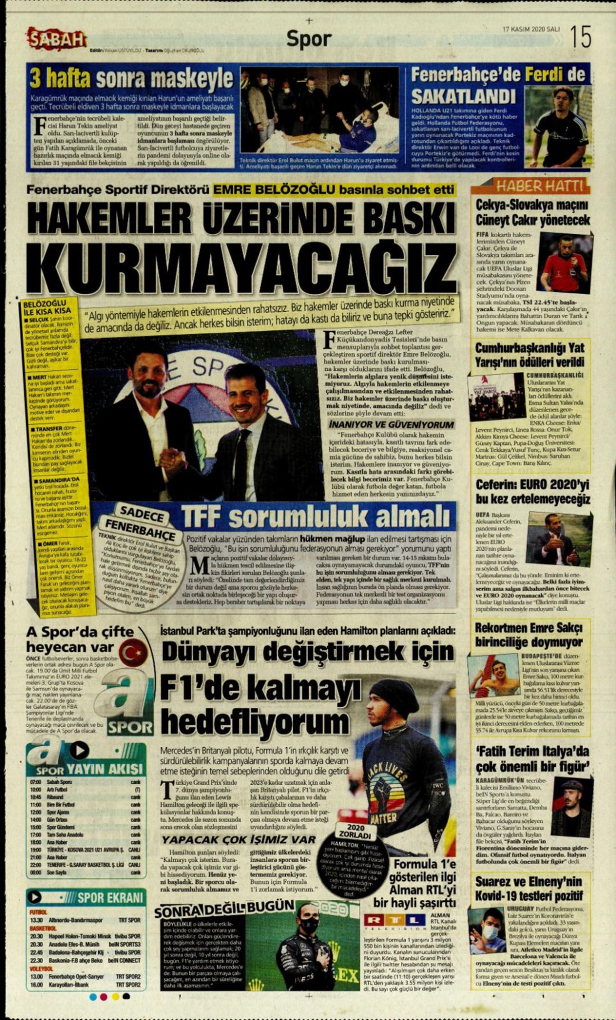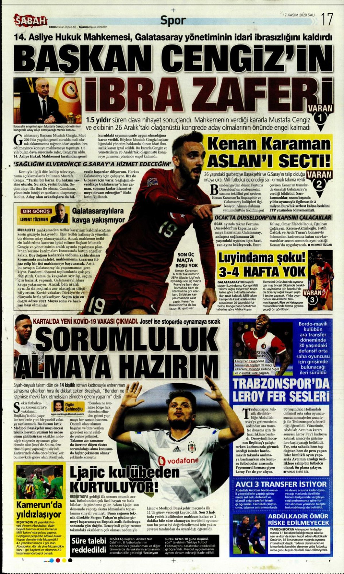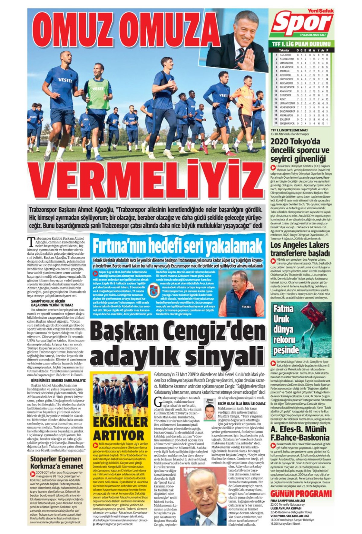 Günün spor manşetleri (17 Kasım 2020)” />
