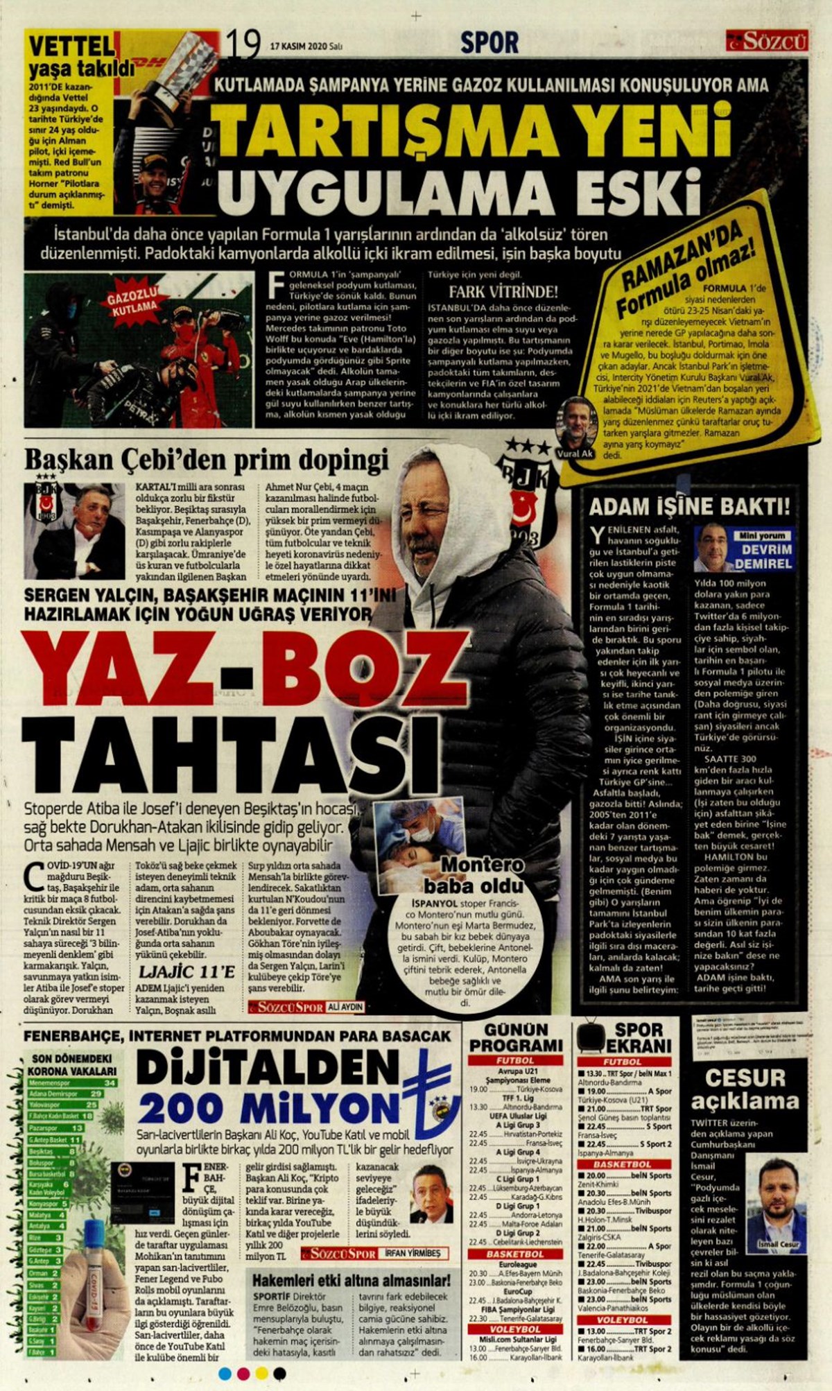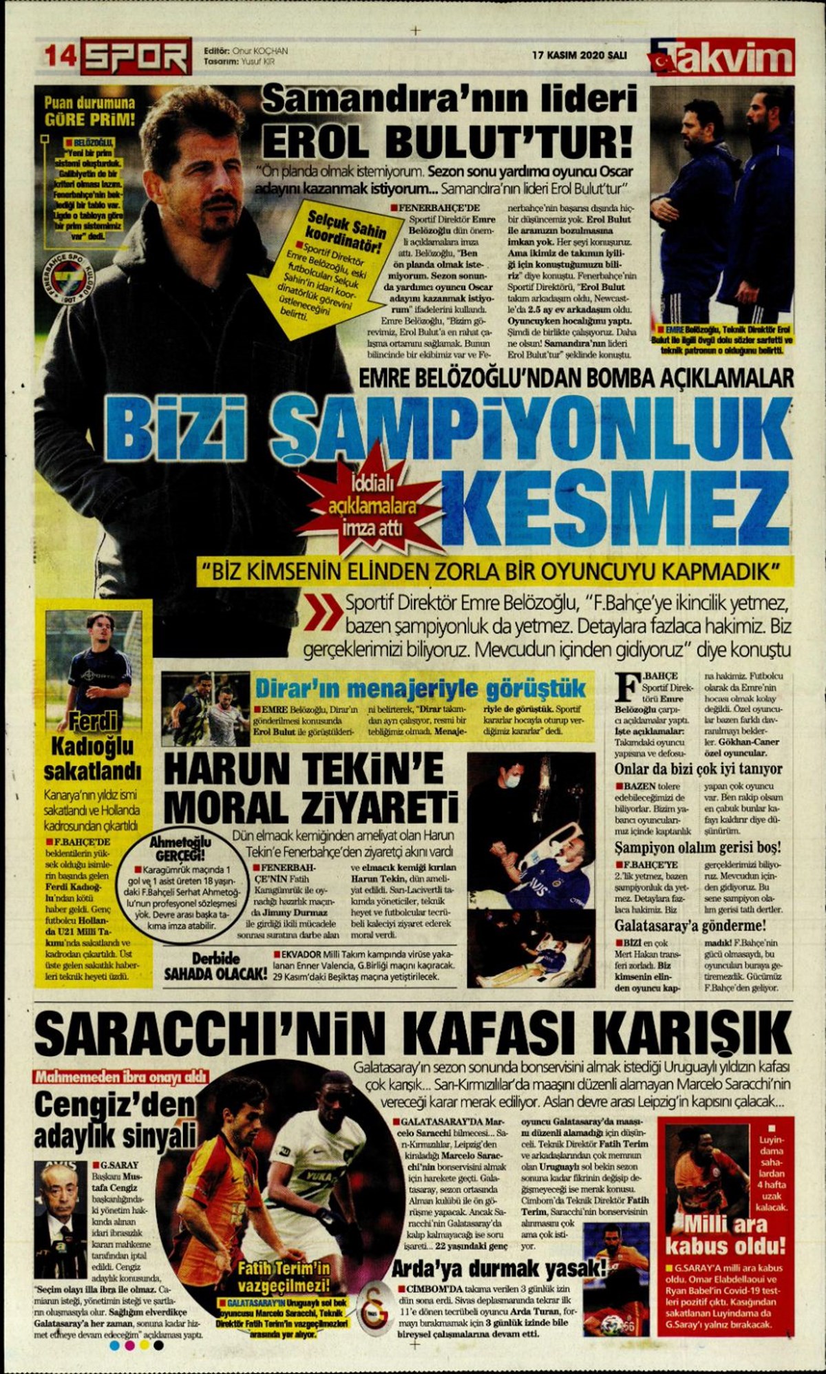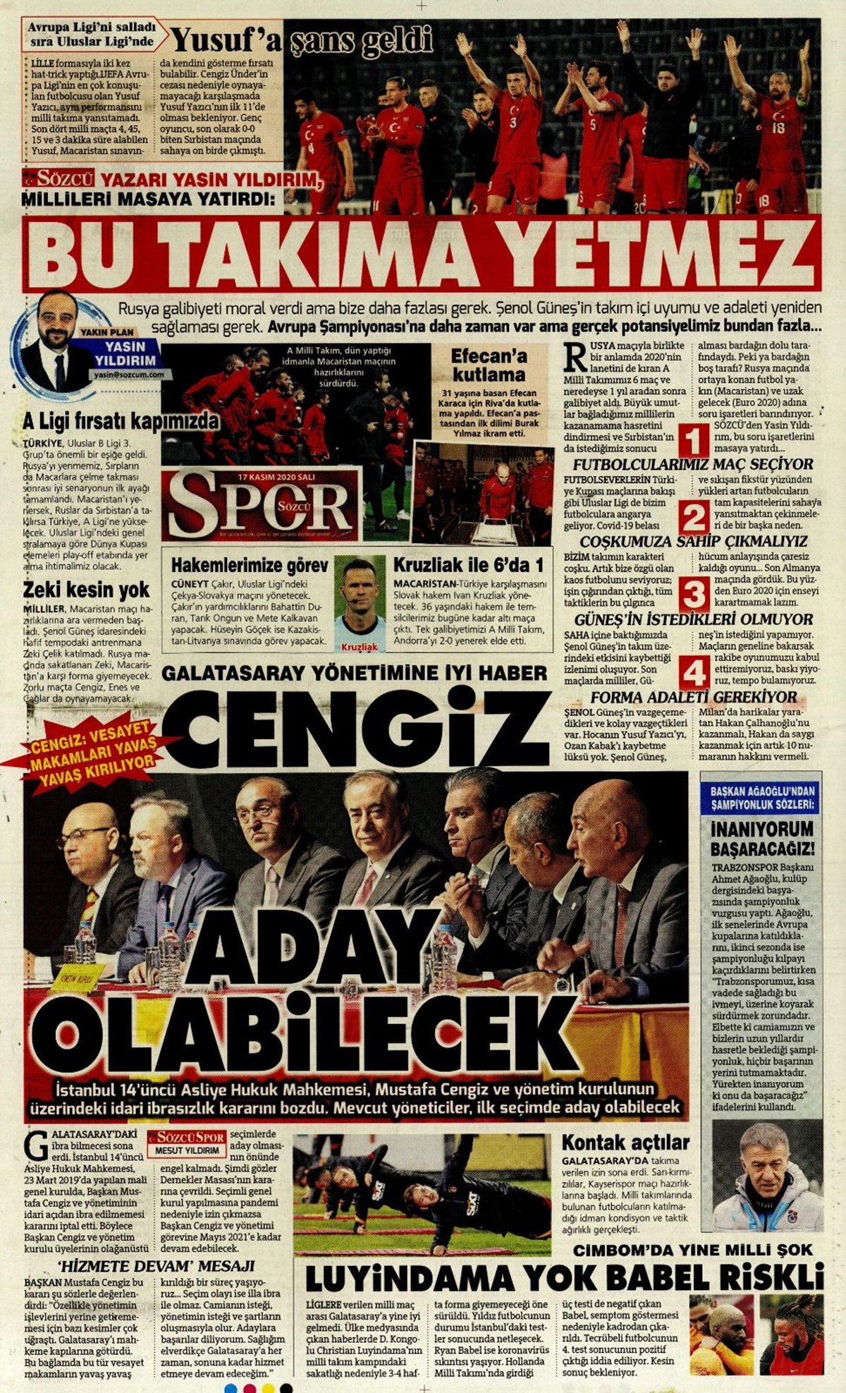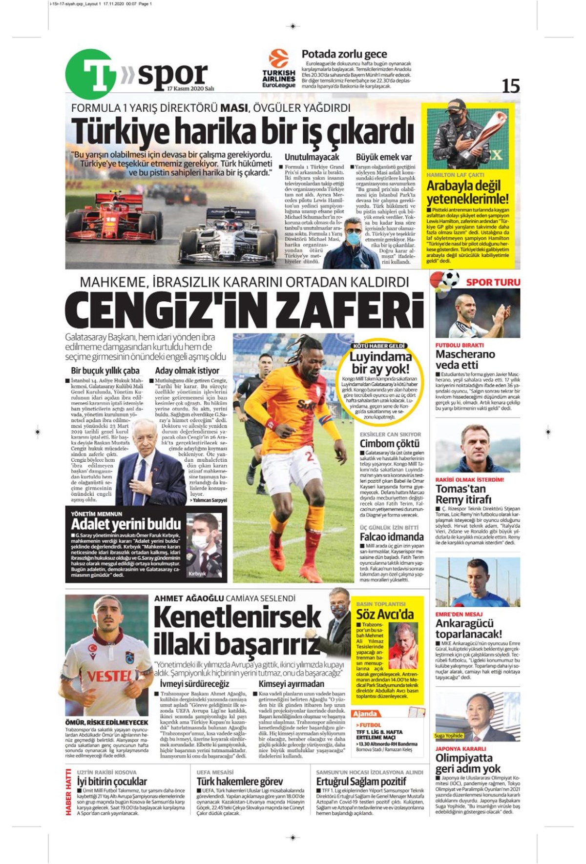 Günün spor manşetleri (17 Kasım 2020)” />