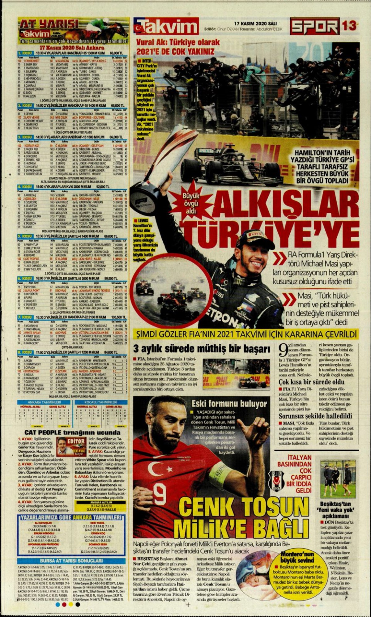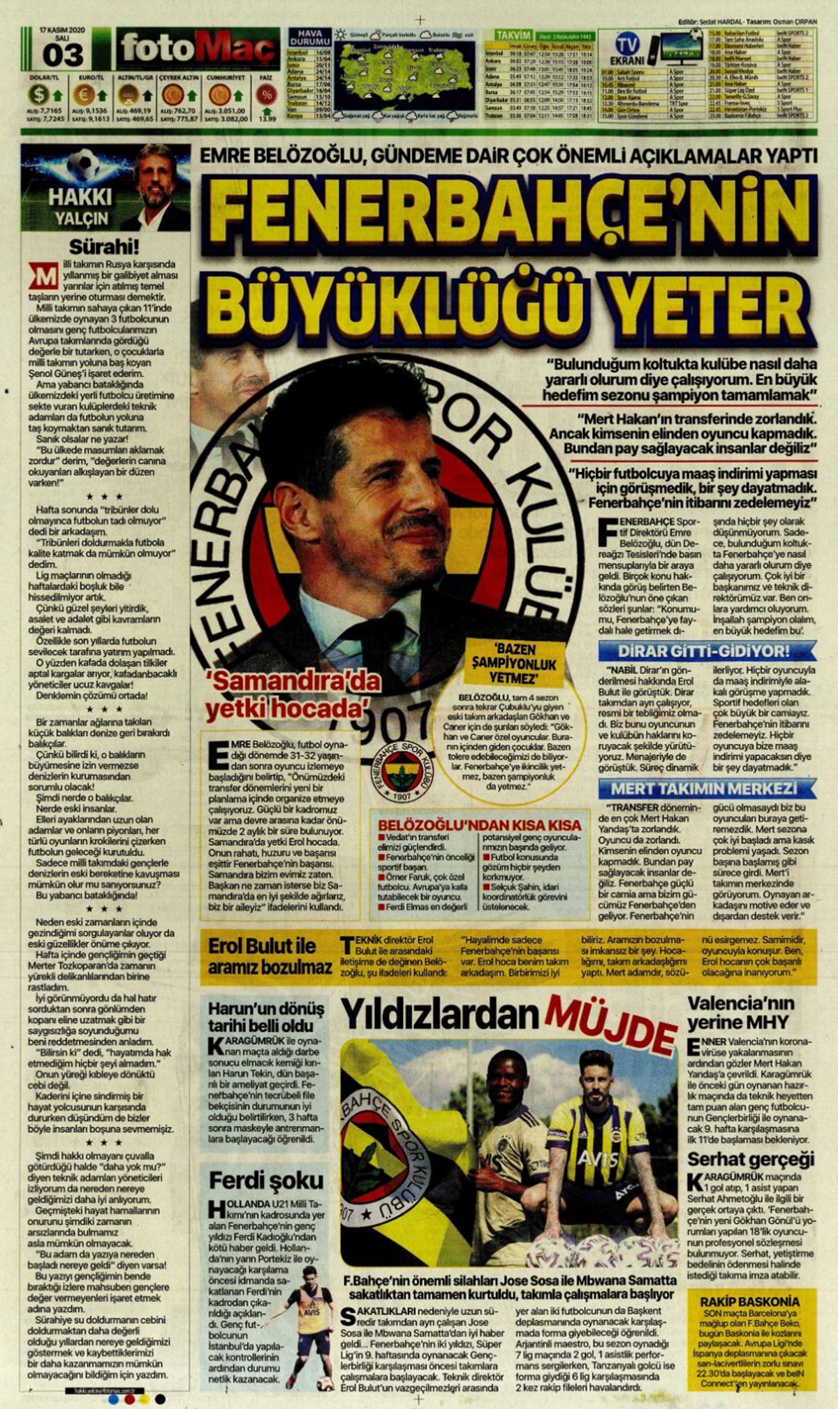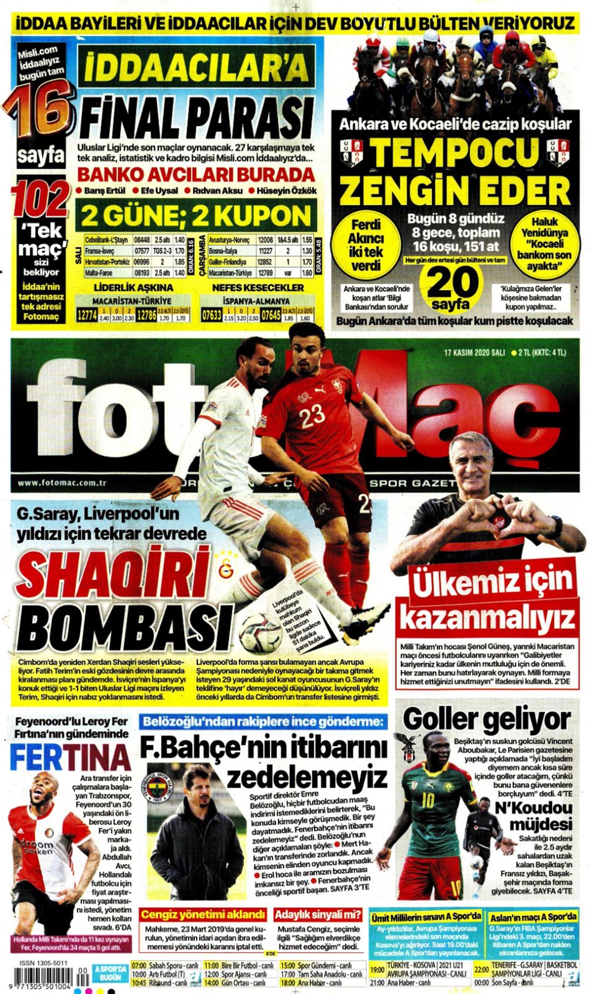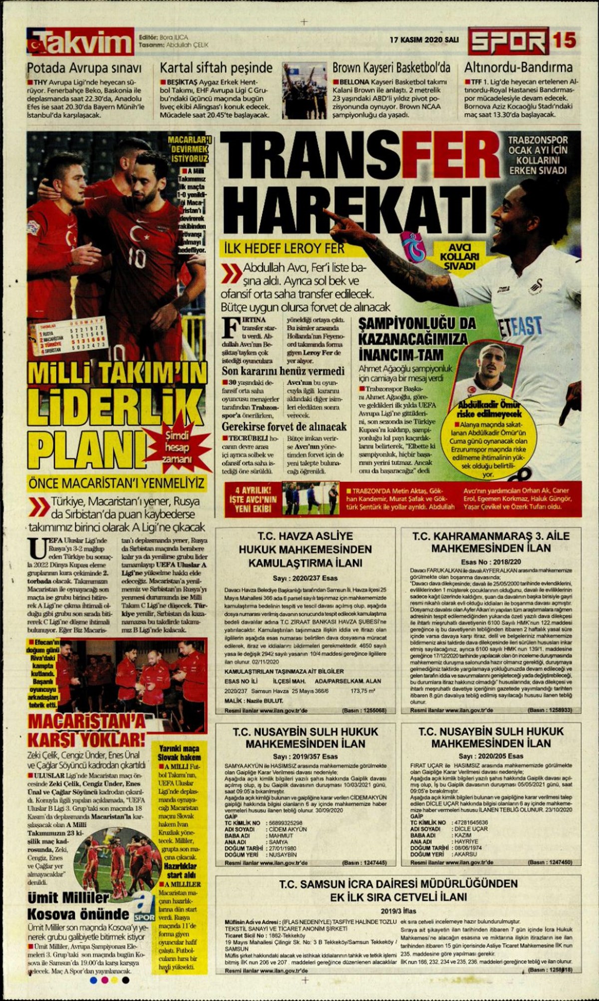 Günün spor manşetleri (17 Kasım 2020)” />
