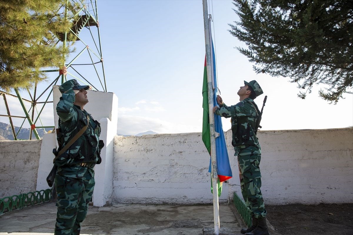 Azerbaycan, Ermenistan’ın işgalinden kurtarılan İran sınırındaki Zengilan’a karakollar kurarak bayrağını göndere çekti.